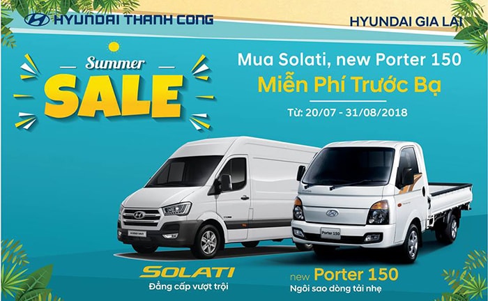 Chào đoán hè với nhiều chương trình ưu đãi ngập tràn uu đãi từ Hyundai Giao Ngay, theo đó khi khách hàng mua xe Hyundai Solati và new porter 150 tại Hyundai Giao Ngay sẽ được tặng 100% lệ phí trước bạ, một chương trình khuyến mãi chào hè vô cùng hấp dẫn của Hyundai Giao Ngay