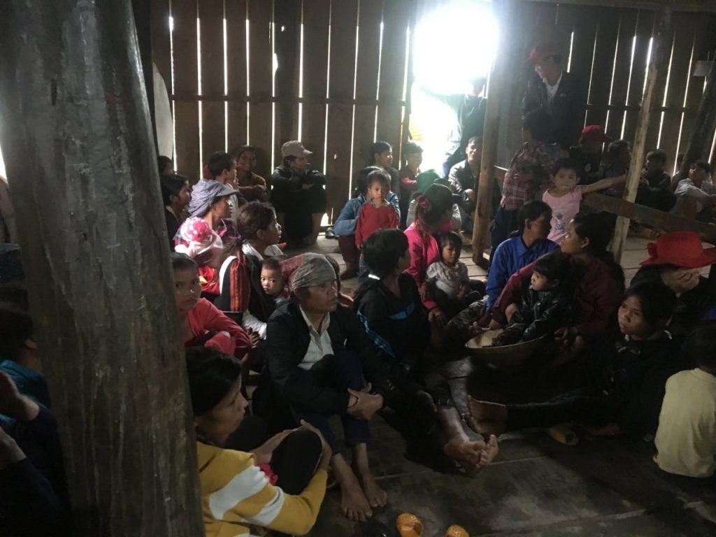 Hình ảnh bà con đợi chúng tôi tại nhà Rông của làng